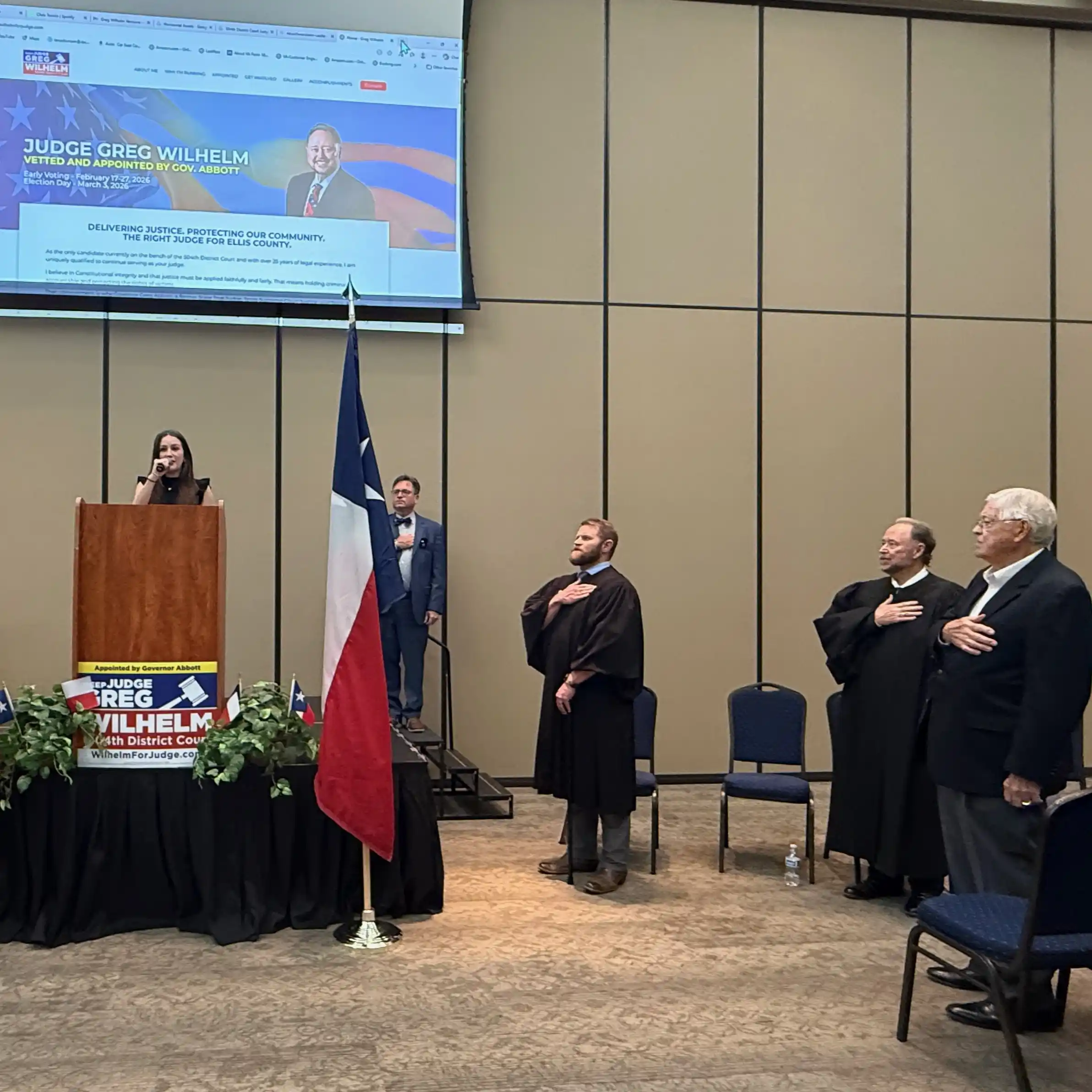 On January 15, 2026, I was sworn in as Judge of the 504th Judicial District Court in Ellis County. Special guest, the Honorable Texas Supreme Court Justice James Sullivan, administered my oath of office. This ceremony marked the beginning of my dedication to Delivering Justice and Protecting Our Community as your judge.